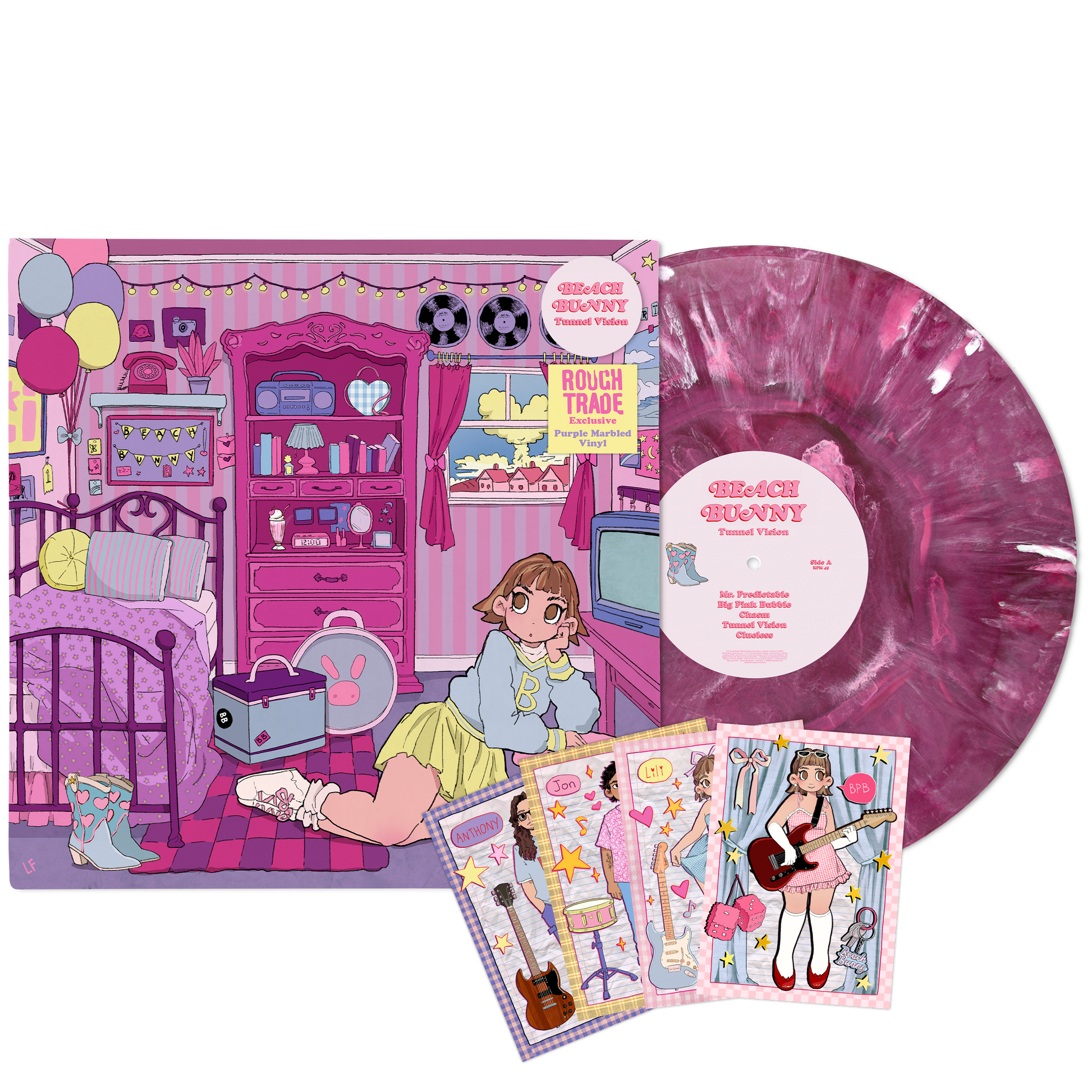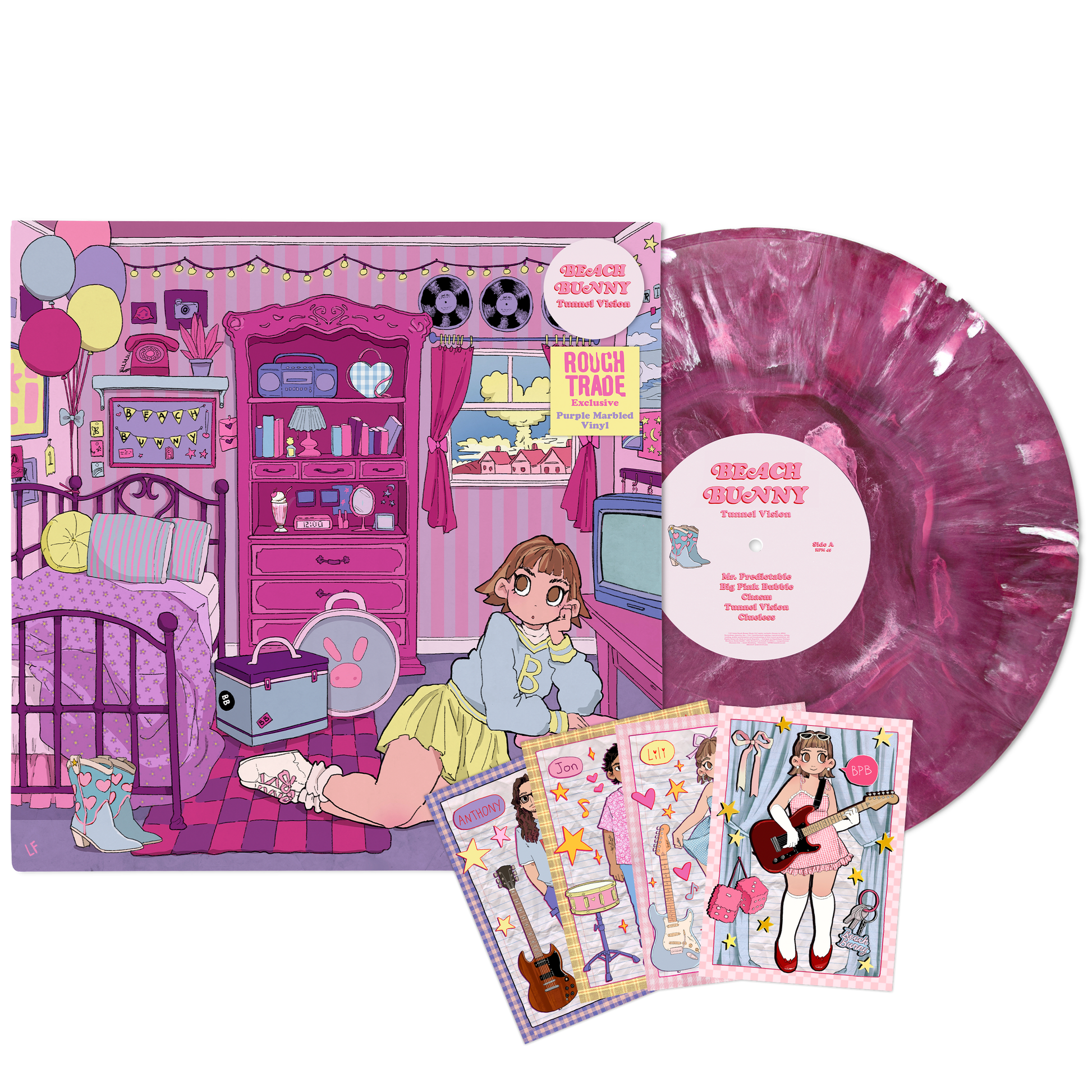 Beach Bunny - the name refers interchangeably to both Trifilio and the full band that also features bassist/lead guitarist Anthony Vaccaro and drummer Jon Alvarado—recorded Tunnel Vision in 2024 in Chicago with longtime producer Sean O’Keefe (Fall Out Boy, Motion City Soundtrack). Where the band experimented with synths and samples on Emotional Creature, this new album returns to their urgent, wildly catchy guitar riffs.